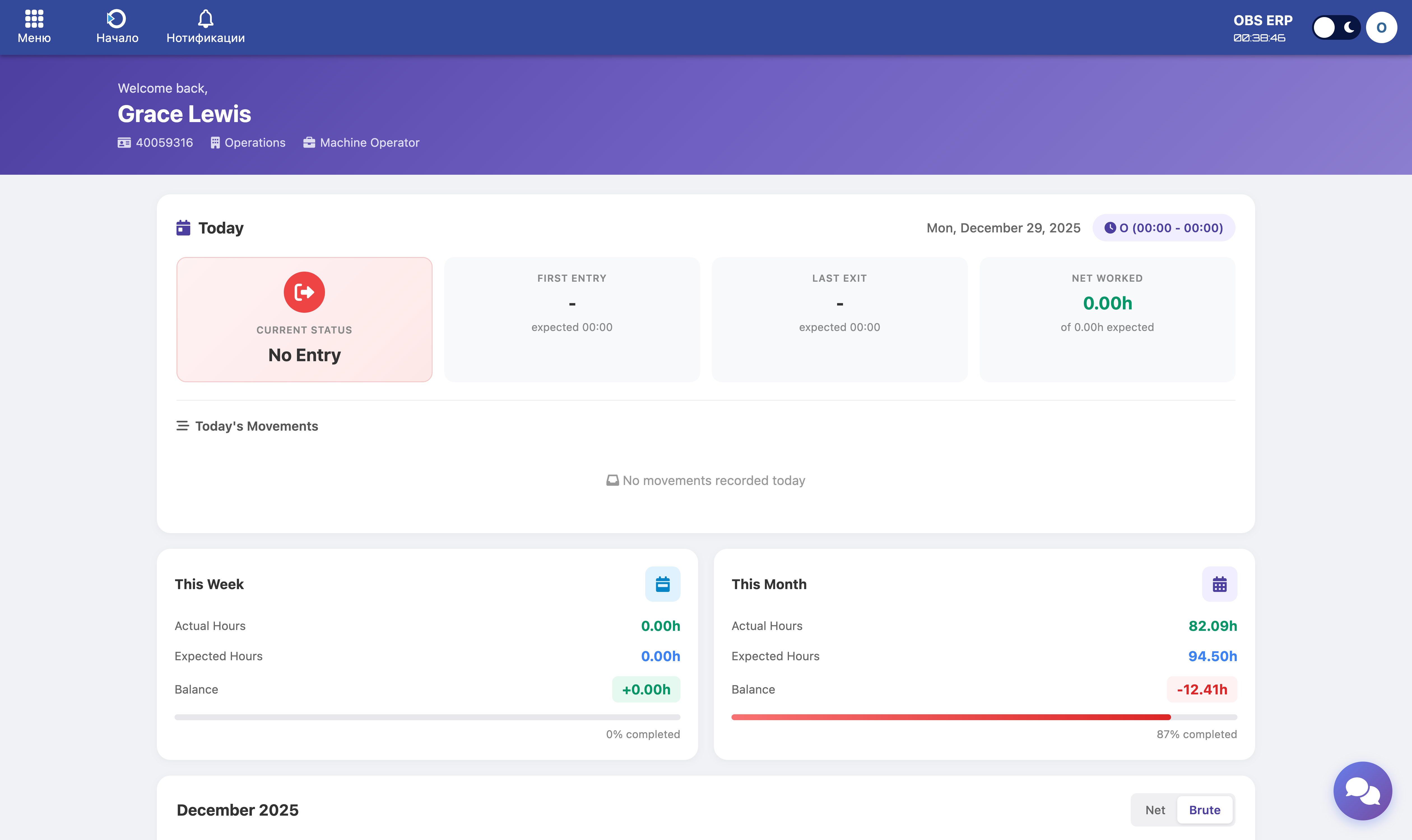 If there are no movements recorded today, status shows No Entry.