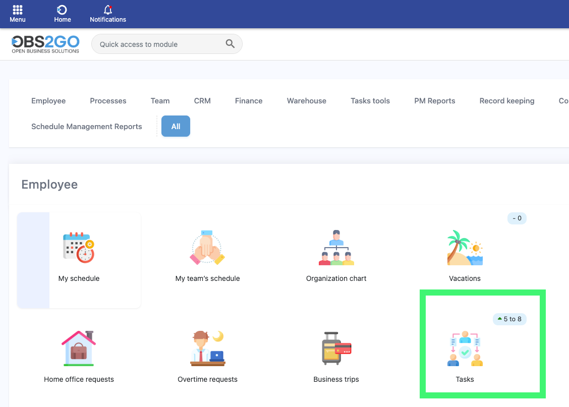 1. Begin by logging into the system and navigating to the "Tasks" module from the main menu.