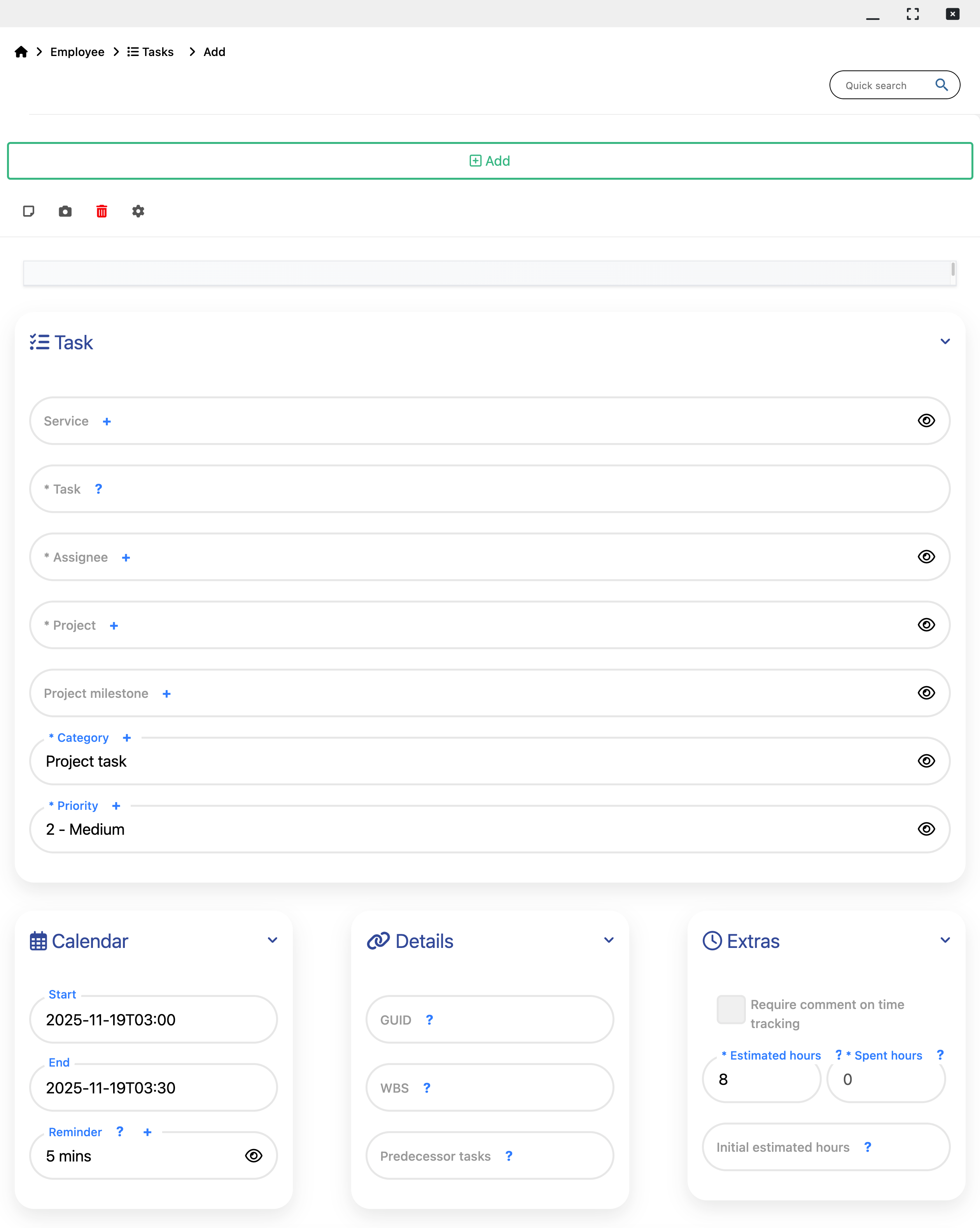 5. Click 'Add' to create the task. It will now appear in the Calendar.