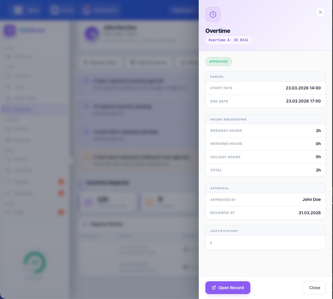| Request Leave Submit Expense Request WFH Request Overtime |